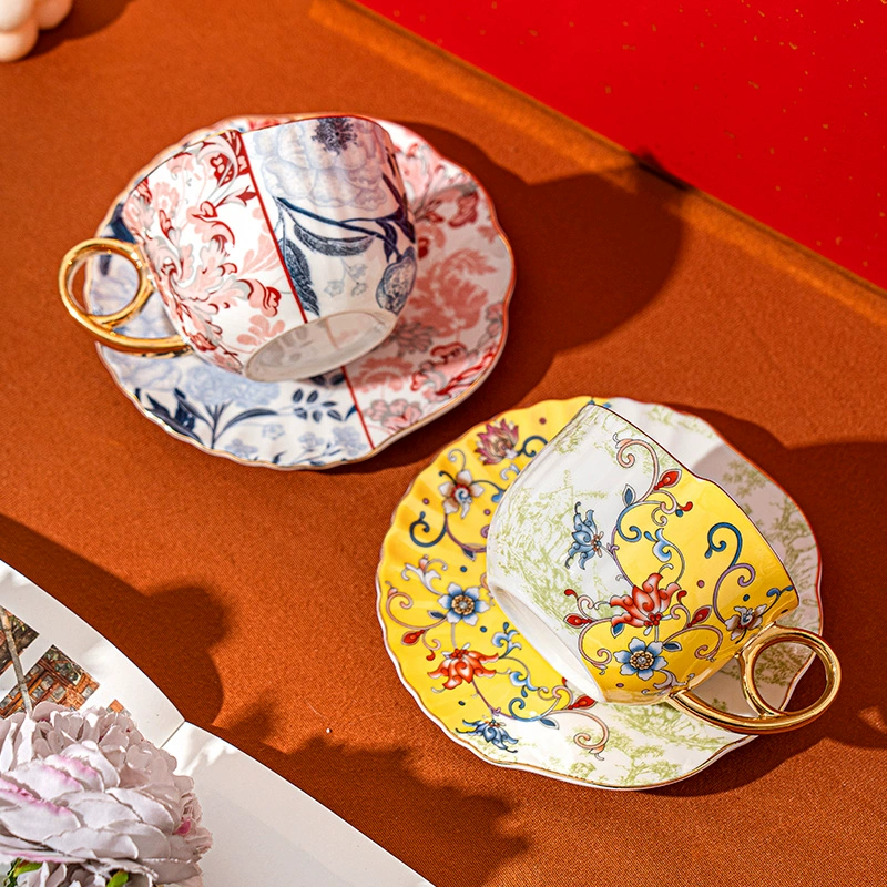 Luxury Ceramic Coffee Cup and Saucer Set – Elegant English Afternoon Tea Gift